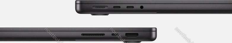 3x Thunderbolt 4 / USB4 с поддержкой DisplayPort 1.4 (40Gb/s, PD-Out, поддержка зарядки устройства PD-In), 1x HDMI 2.1, 1x комбинированный аудиоразъём 3,5 мм, 1x SD Card, 1x DC In Apple MagSafe 3 (поддержка зарядки устройства)