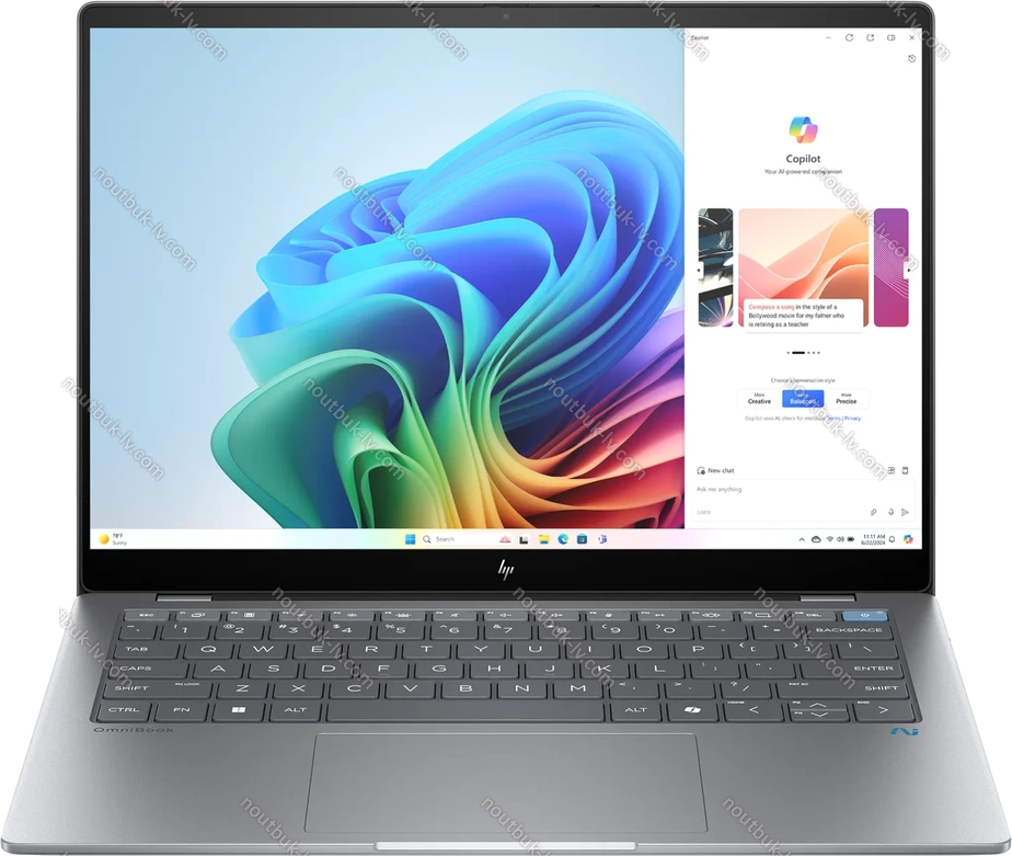 Ноутбук HP OmniBook X AI 14-fe0660ng, Meteor Silver, Snapdragon X Elite - X1E-78-100, 16GB RAM, 1TB SSD - купить по лучшей цене и в кредит с бесплатной доставкой по Риге и Латвии