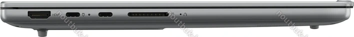2x USB4 с поддержкой DisplayPort 2.1 (40Gb/s, PD-Out, поддержка зарядки устройства PD-In), 1x USB-A 3.0 (5Gb/s, BC), 1x USB-A 3.0 (5Gb/s), 1x HDMI 2.1, 1x комбинированный аудиоразъём 3,5 мм Line-In/Out, 1x SD Card