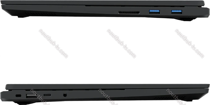 1x Thunderbolt 4 / USB4 с поддержкой DisplayPort 2.1 (40Gb/s, PD-Out 15W, поддержка зарядки устройства PD-In 140W), 1x USB-C 3.1 с поддержкой DisplayPort 2.1 (10Gb/s, PD-Out 15W, поддержка зарядки устройства PD-In 100W), 1x USB-A 3.0 (5Gb/s), 2x USB-A 3.0 (5Gb/s), 1x HDMI 2.1 (32 Gbps), 1x комбинированный аудиоразъём 3,5 мм Line-In/Out, 1x RJ-45 (1000Base-T), 1x SD Card
