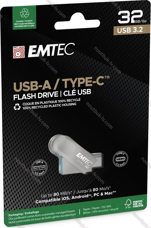 Emtec D280 32GB, USB-A 3.0/USB-C 3.0, Латвия | |
