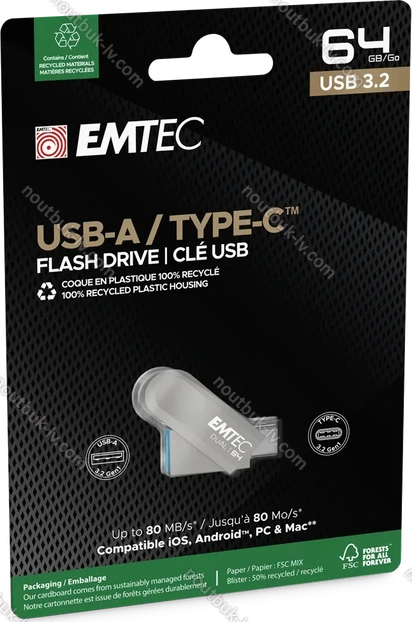 Emtec D280 64GB, USB-A 3.0/USB-C 3.0, Латвия | |