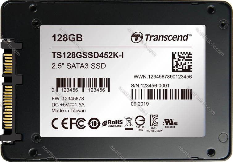 Transcend Industrial SSD452K-I SSD 128GB, 2.5" / SATA 6Gb/s, Латвия | |