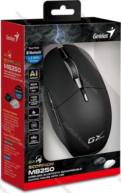 Genius GX Gaming Scorpion M8250 wireless rechargeable Gaming Mouse, black, USB/Bluetooth - купить недорого по лучшей цене в Риге и с бесплатной доставкой по Латвии