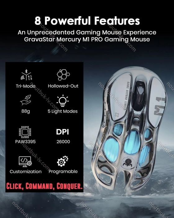 GravaStar Mercury M1 Pro wireless Gaming Mouse, Battle Worn Edition, Silver Mist, USB/Bluetooth - купить по лучшей цене в Риге и с бесплатной доставкой по Латвии